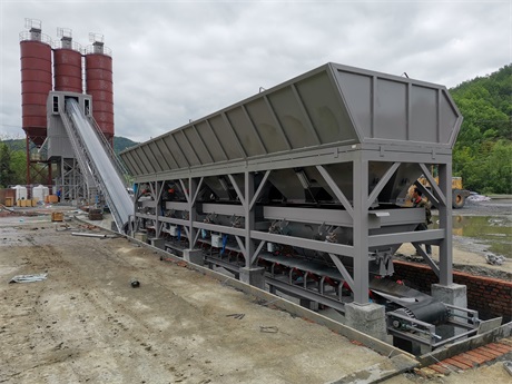 3采用料斗式装载机上料,后台布置紧凑,三个骨料仓一字形排列,使装载机上料方便占地少,总体布置美观。